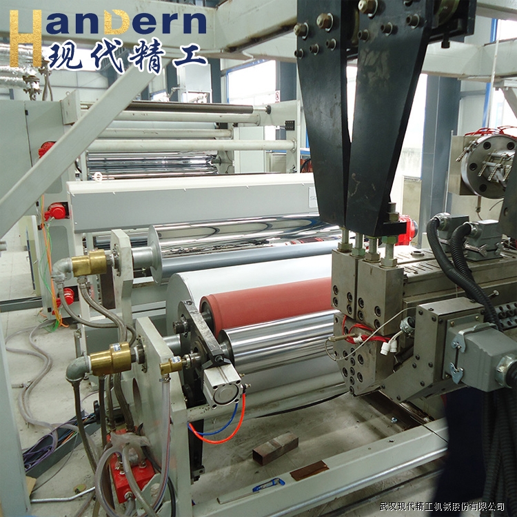 拉伸機(jī):擠出的PET熔體進(jìn)入拉伸機(jī)進(jìn)行拉伸。拉伸機(jī)通過一系列的輥輪和張力控制系統(tǒng),將PET熔體拉伸成所需的薄膜厚度和寬度。拉伸過程中,通過調(diào)節(jié)輥輪的速度和間距,控制薄膜的拉伸比例,使其保持穩(wěn)定的尺寸和性能。